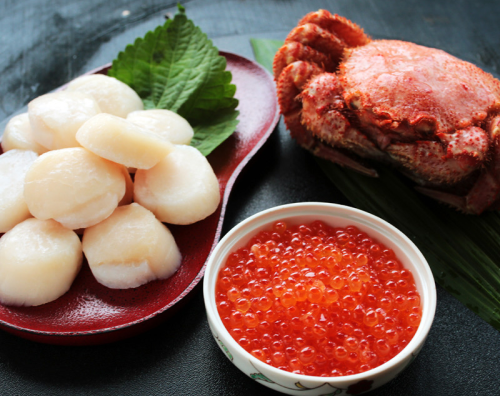 [カネコメ田中]北海道産・毛ガニ&ホタテ貝柱&いくら醤油漬