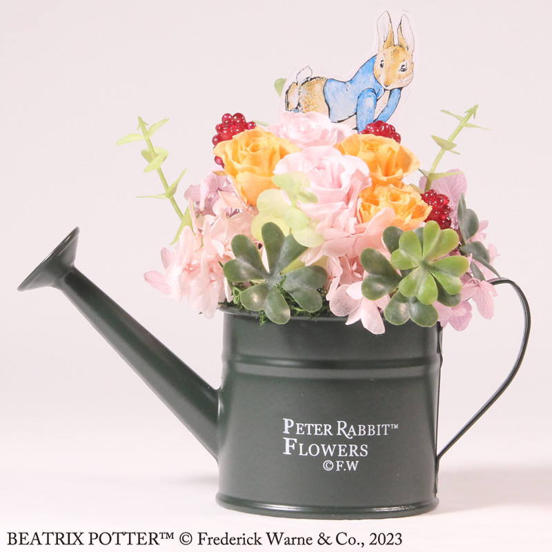 ブリキのじょうろにバラやアジサイのプリザーブドフラワー!